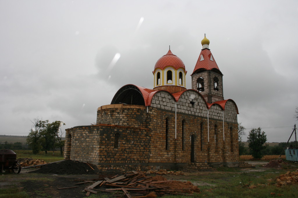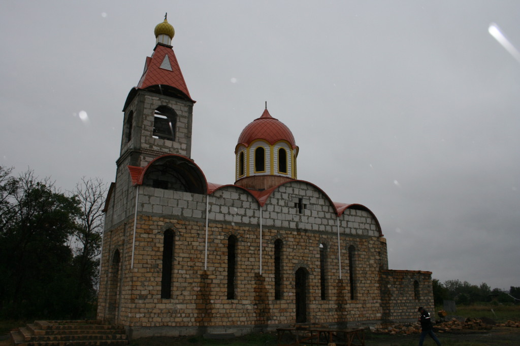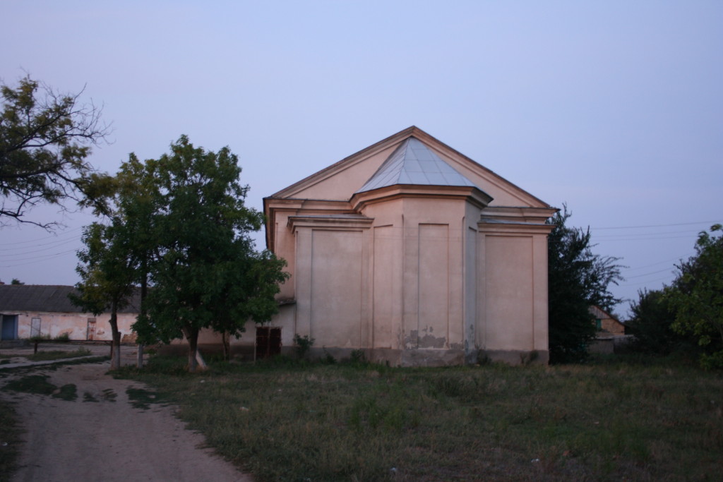 Auf dem Bild links die Deutsche Kirche, wie unsere Vorfahren sie in Erinnerung haben. Die Fotos von der alten und neuen Kirche, sowie vom Friedhof stammen alle aus dem Jahr 2009. Die alte Kirche wurde zwischen 1894 und 1896 erbaut. Es hatten in damaliger Zeit etwa 800 Personen Platz. Heute ist die ehemalige Kirche Treffpunkt der heutigen Einwohner. Es ist zugleich Kino und Theater, in Ihr ist die Bücherei untergebracht, sowie ein kleines Museum. Ein separater Raum für das Museum war 2009 in Arbeit. Die neue Kirche steht hinter der alten Kirche am Rande der ehemaligen Neuen Straße und war 2009 noch im Rohbau.